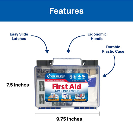 First Aid Only 91248 OSHA-Compliant All-Purpose 50-Person Emergency First Aid Kit for Home, Work, and Travel, 260 Pieces