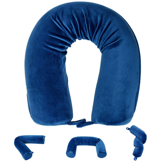 Fern and Willow Neck Pillow for Travel - Bendable Twist Memory Foam Traveling Pillows for Airplane & Car, Provides Head, Shoulder, and Chin Support - Navy Blue