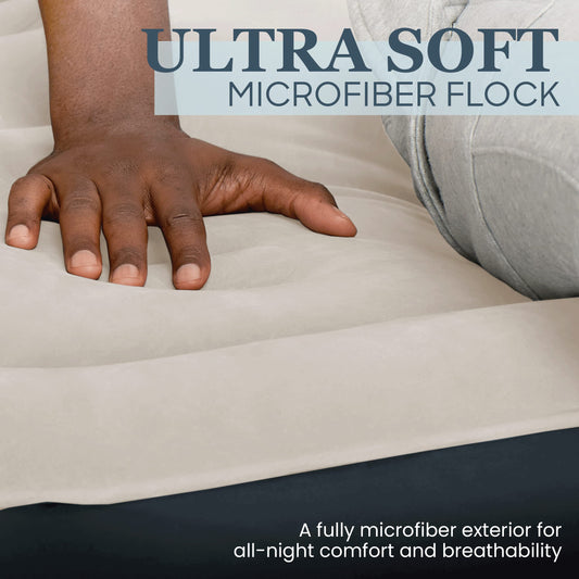 EZ INFLATE Air Mattress with Built in Pump - Queen Size Double-High Inflatable Mattress with Flocked Top - Easy Inflate, Water