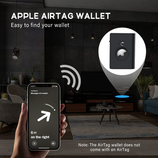 GAOCHALE AirTag Wallet with Air tag Slot Genuine Leather Air Tag Wallet RFID Technology Credit Card Holder with Minimalist Wallet for Men for Apple AirTag (No Airtag Included)(Black)
