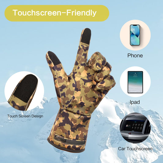 Heated Glove Liners for Men Women, Rechargeable Hand Warmers, Thin Camouflage Touchscreen Battery Electric Gloves Liner for Motorcycle Skiing Hiking Hunting