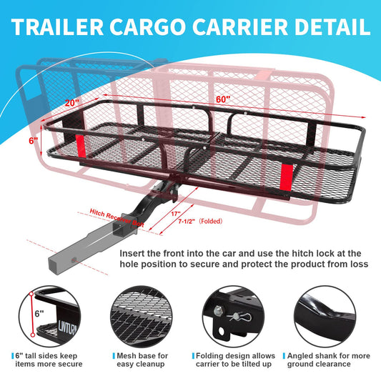 LWTURMRT 60"X21.6"X6" Hitch Cargo Carrier and Receiver Hitch Cargo Rack with Waterproof Cargo Bag(58"X20"X24"),Carrier Cargo Used Rust Resistant Baking Paint and Alloy Steel Material